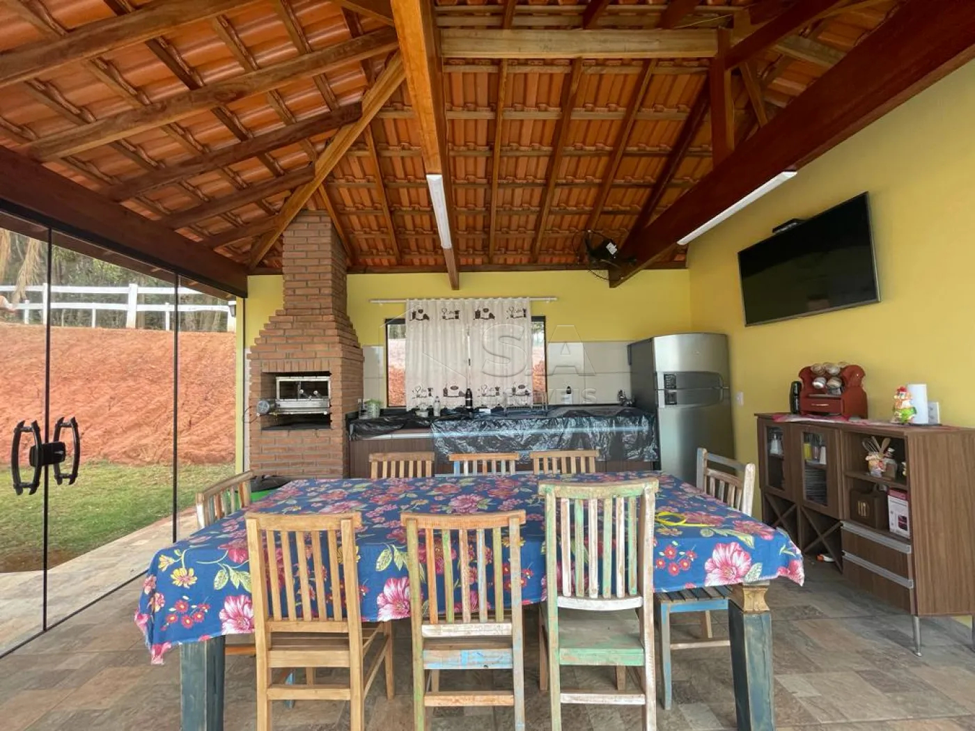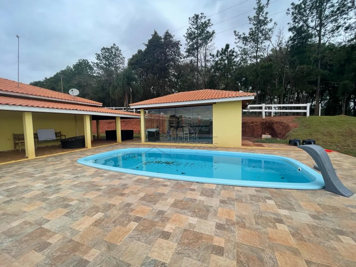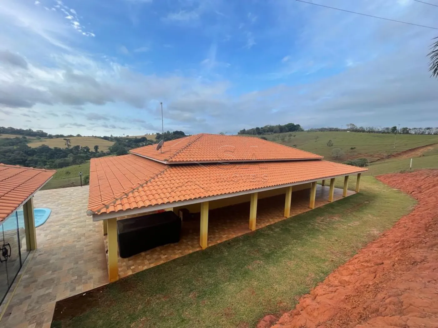 POSSUI CASA SEDE COM AMBIENTES AMPLOS, TODA AVARANDADA, QUIOSQUE COM CHURRASQUEIRA, PISCINA, CASA DE CASEIRO, LAGO, PASTAGEM, CHIQUEIRO E GALINHEIRO.. ref. 6239 04/02.