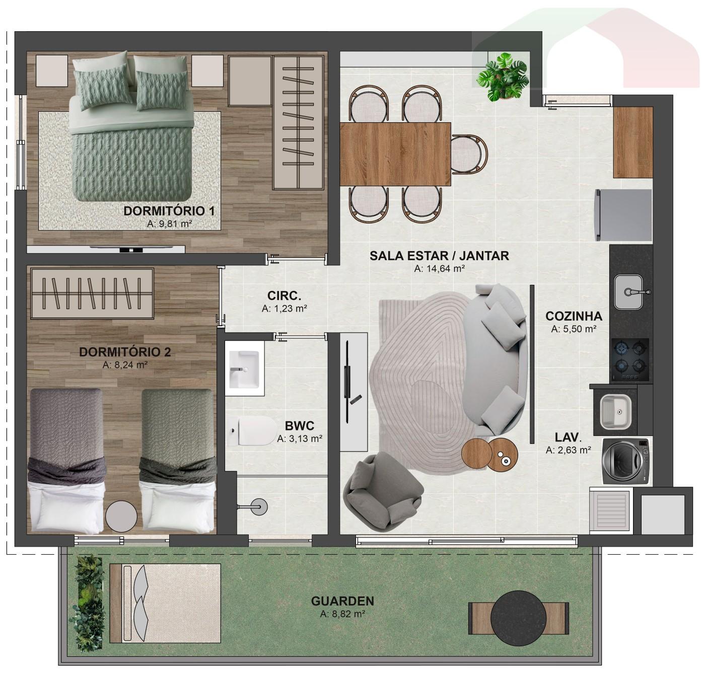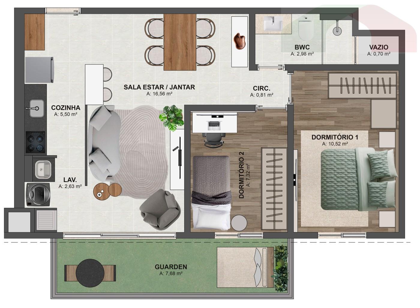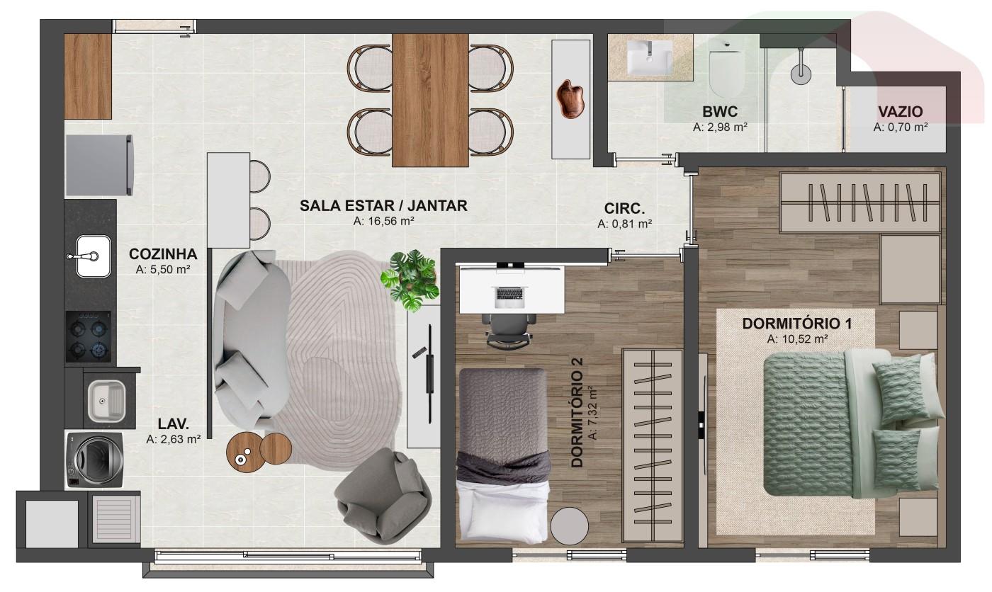 - Unidades de 51m² e 53m² de área privativa