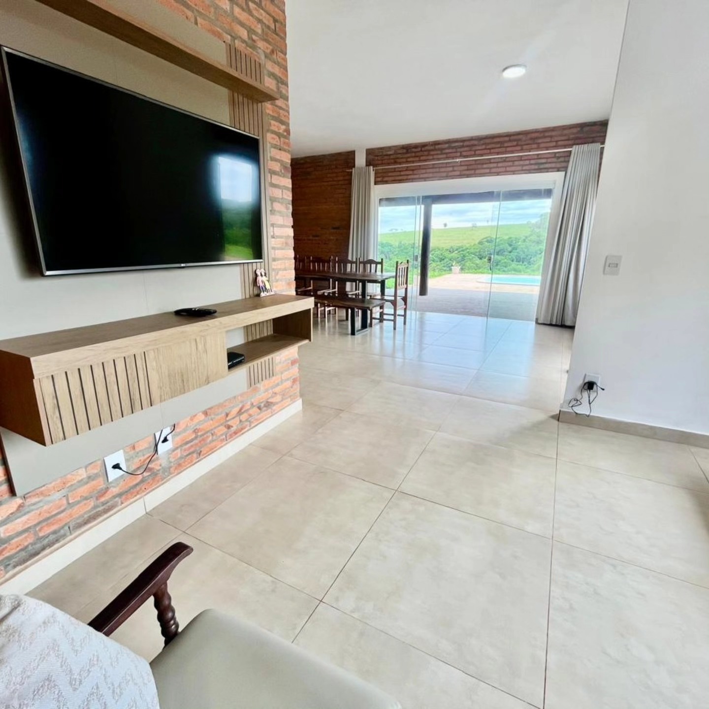 Casa com 2 dormitórios sendo 1 suite, banheiro social, sala de 2 ambientes com cozinha americana e gabinete de laje e piso frio com 110 metros de área construída. Varanda com churrasqueira e piscina. Área total da chácara 20 mil M² com rio no fundo, fechada com cercas e portão eletrônico. Documentos em ordem. Local com vista linda e área de mata, local preservado com muita privacidade!