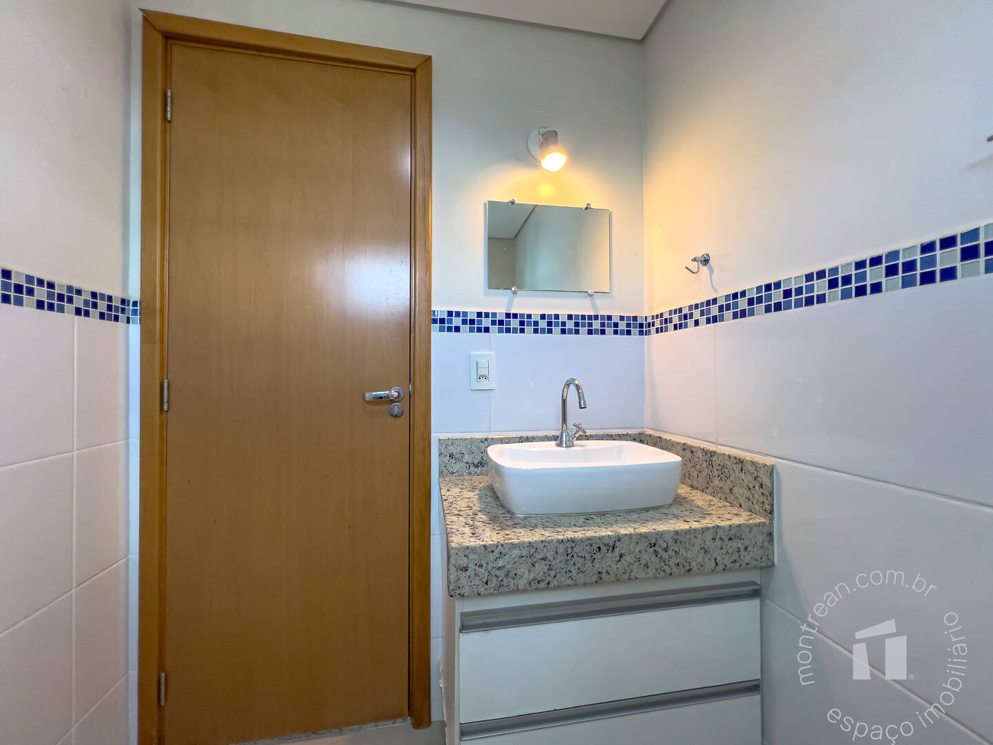 Banheiro social completo, com box e armário planejado,