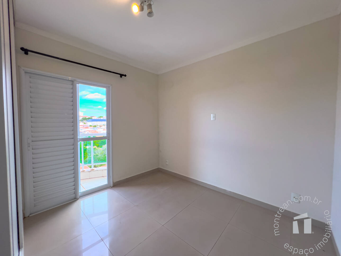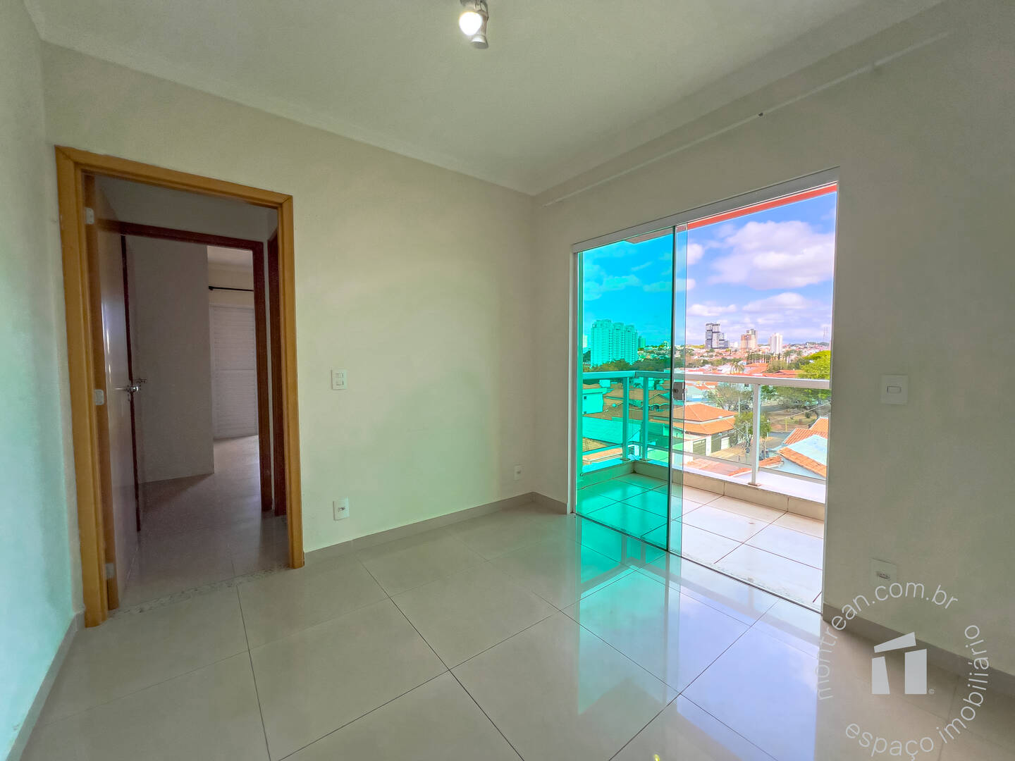 Dormitório com armário planejado e varanda,