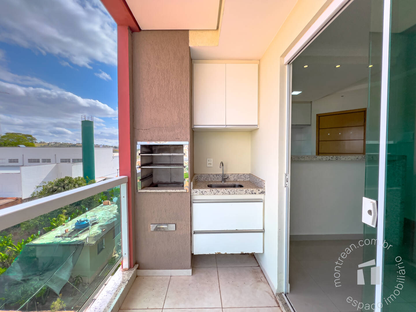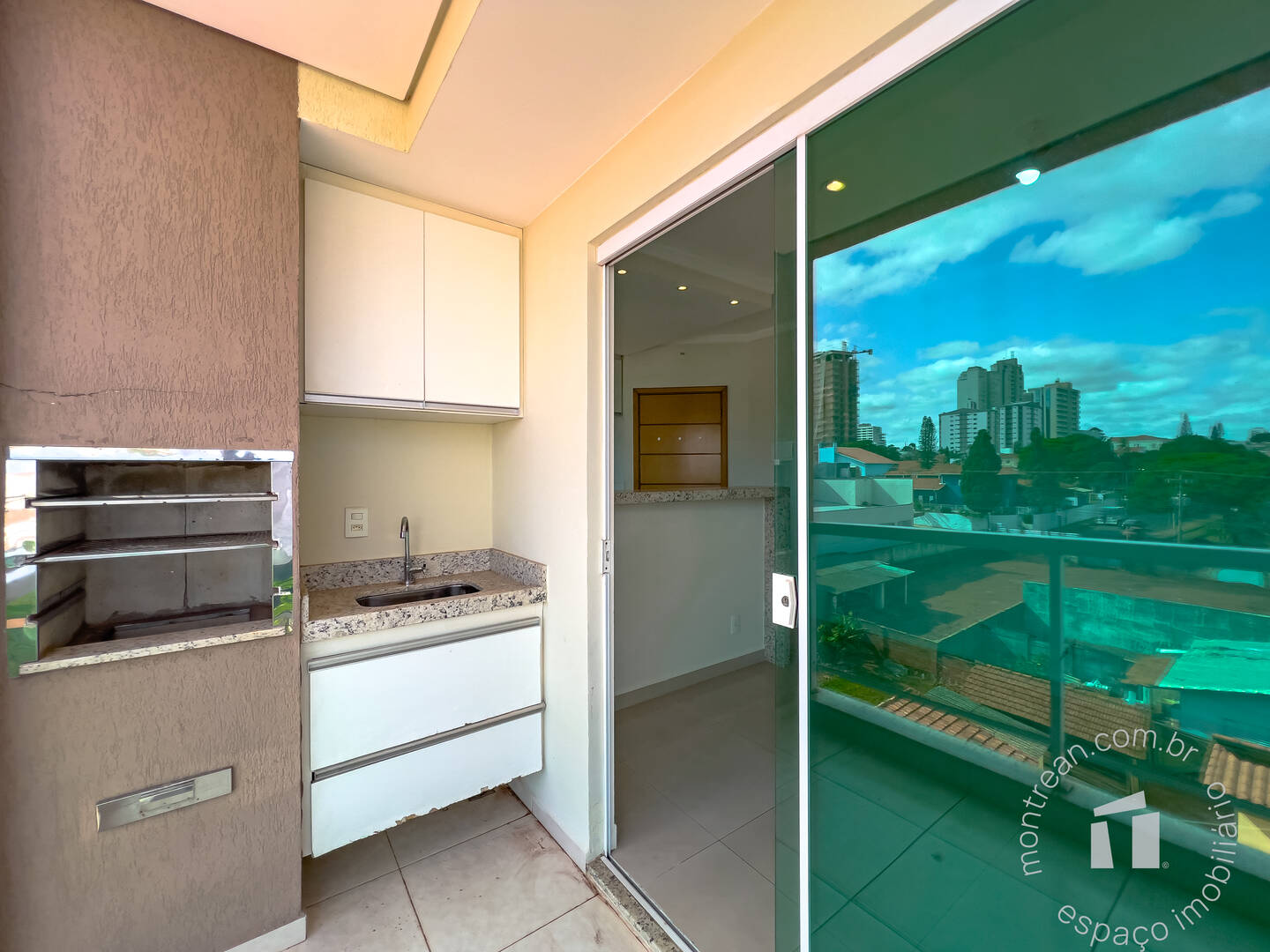 Varanda gourmet com churrasqueira e armário planejado,