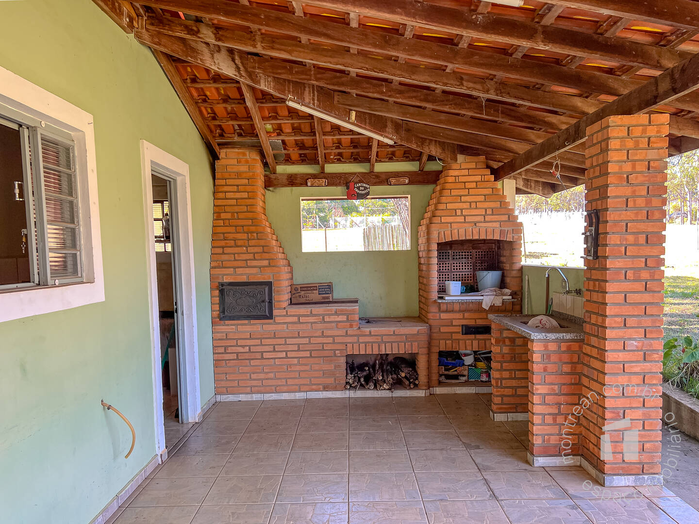 Lazer: área com churrasqueira, fogão a lenha.
