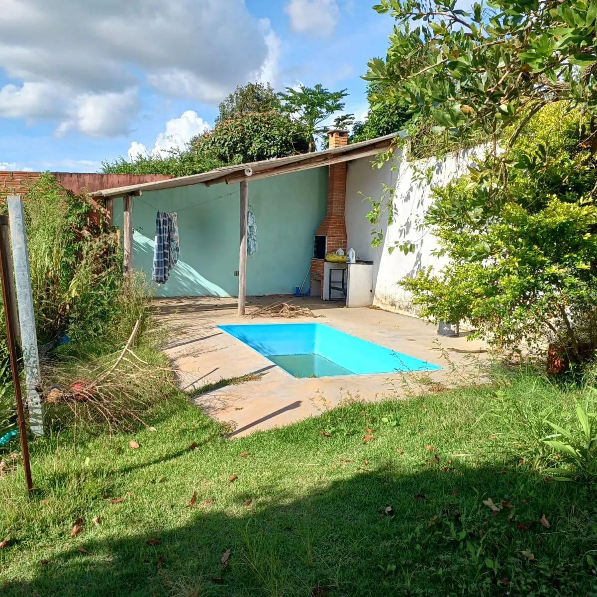 * 03 dormitórios, sala, cozinha, banheiro, garagem. * Quintal amplo com piscina.