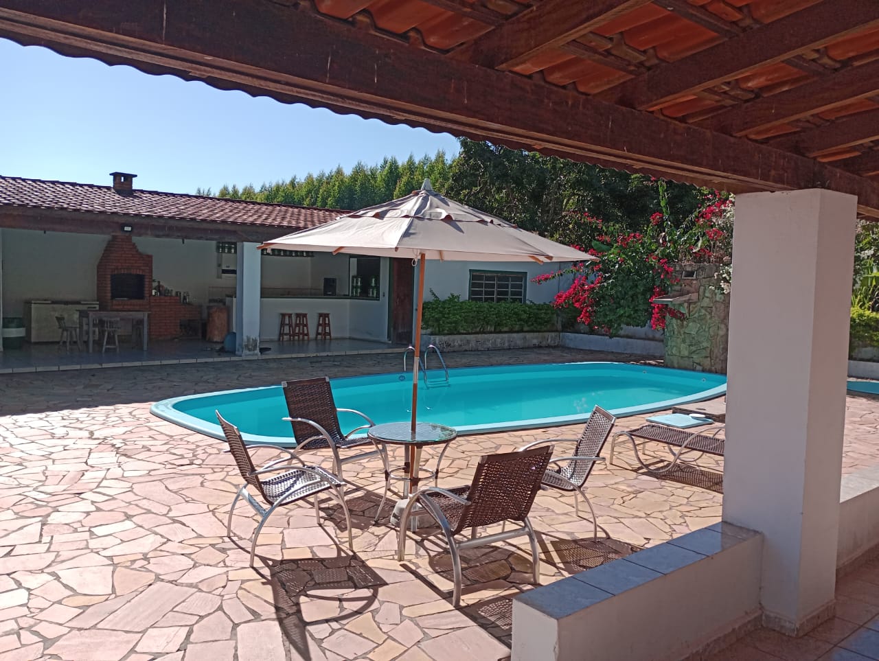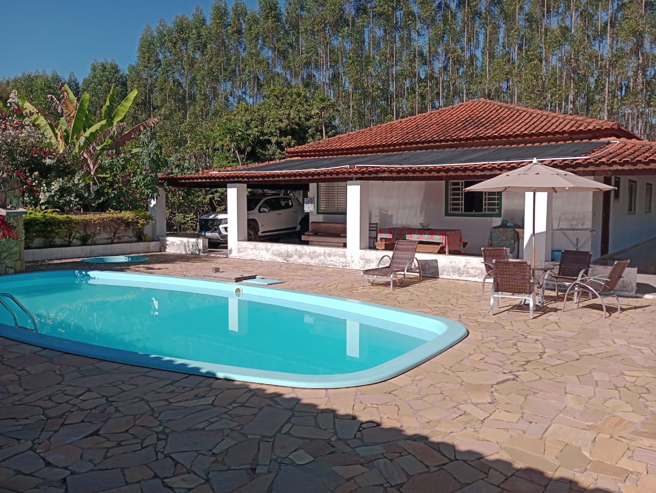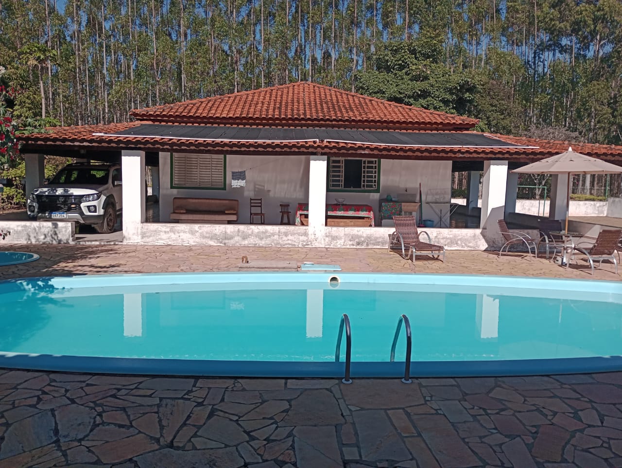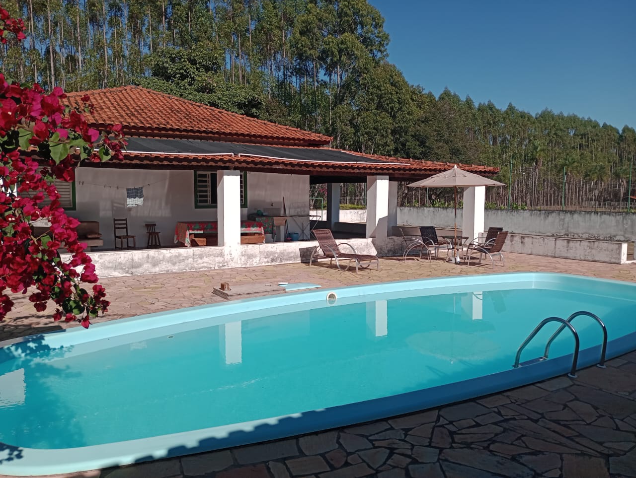 Excelente sítio em Bofete com 10 alqueires. Casa sede avarandada, piscina, casa de hóspedes, área de lazer, campo futebol, casa de caseiro, barracão. Topografia Plana, eucalipto em 7 alqueires, pastagens.