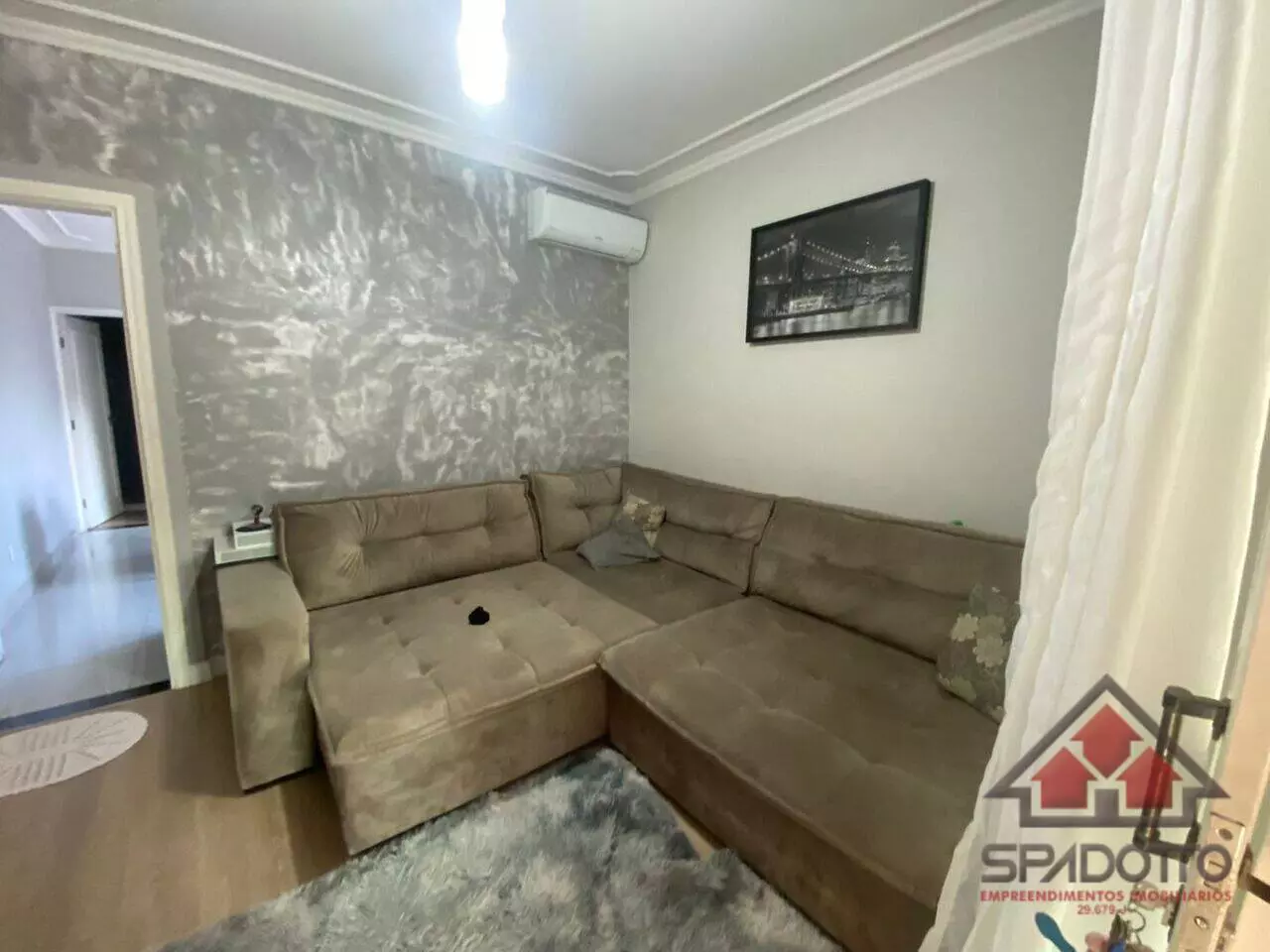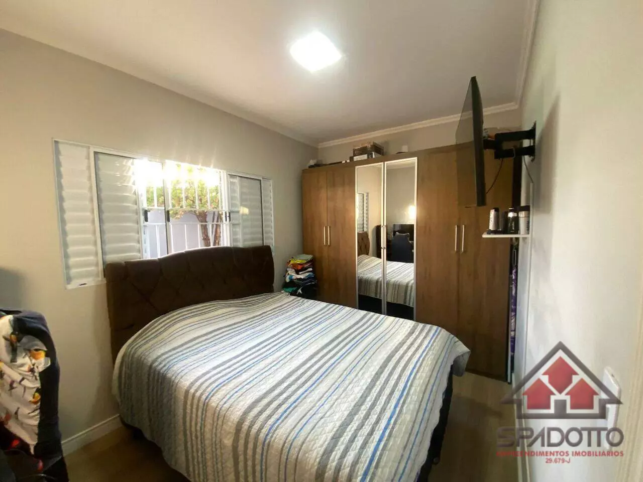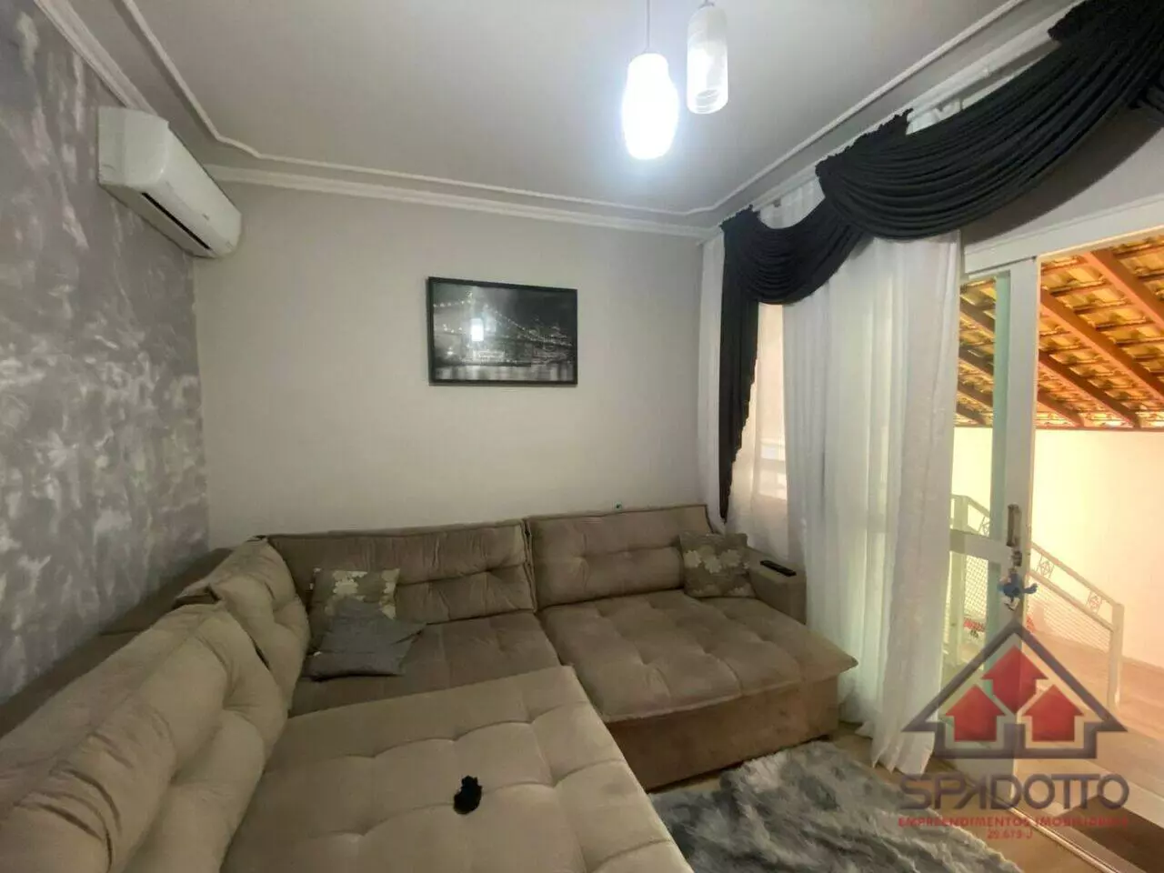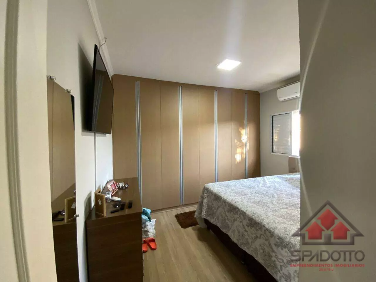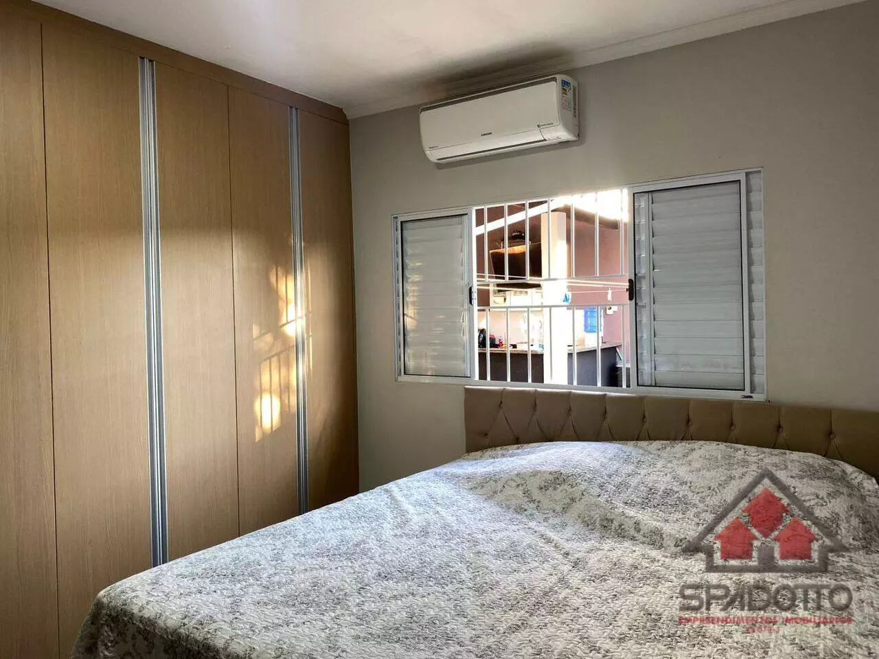 2 dormitórios (1 suíte com ar condicionado) , sala com ar , cozinha com planejados , wc com box e armários , área gourmet com churrasqueira , piscina e lavabo, jardim quintal, garagem coberta para dois veículos.