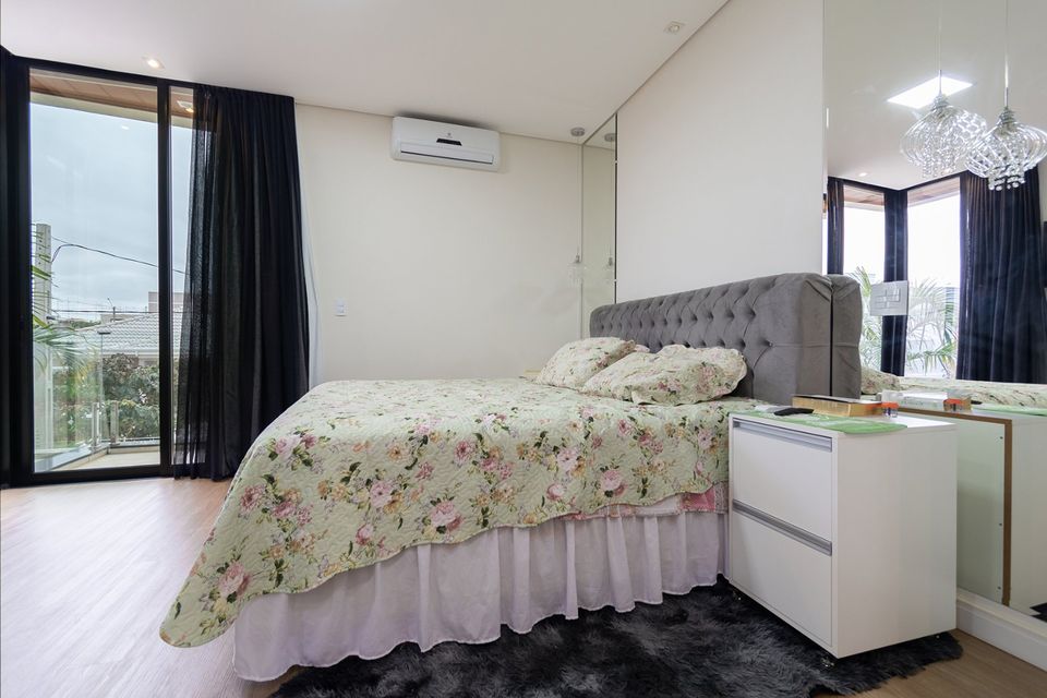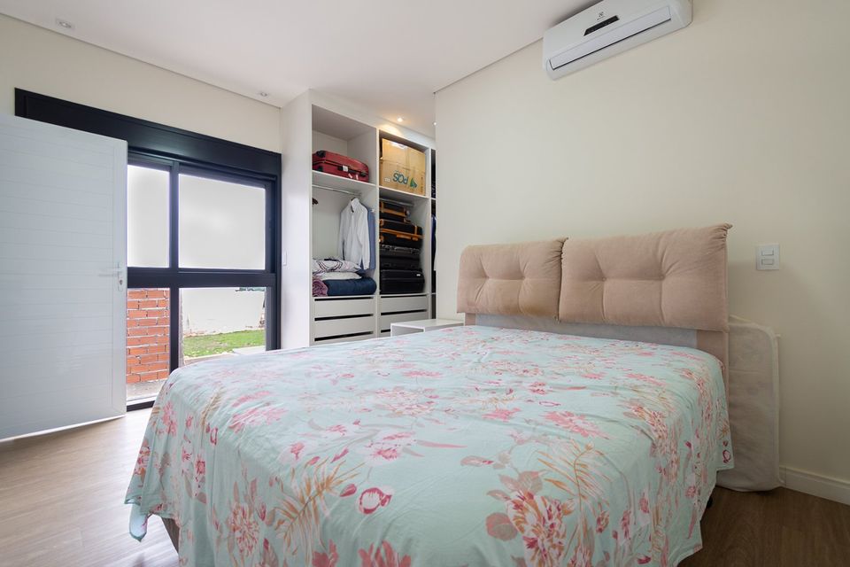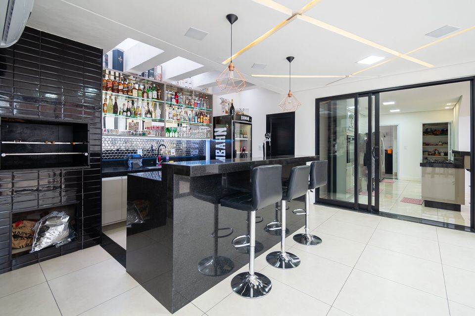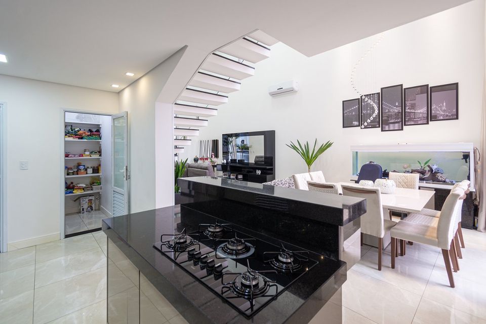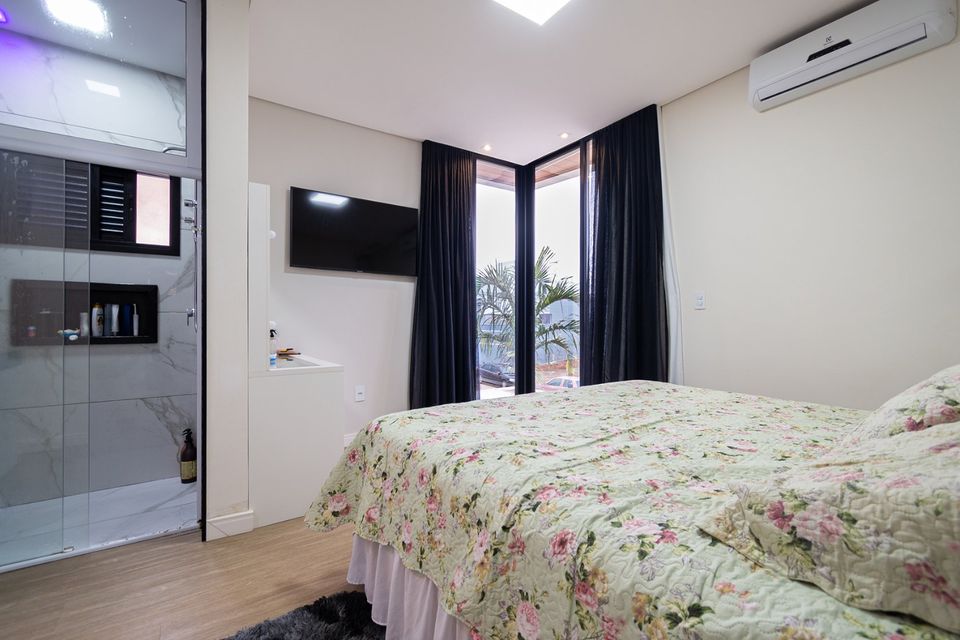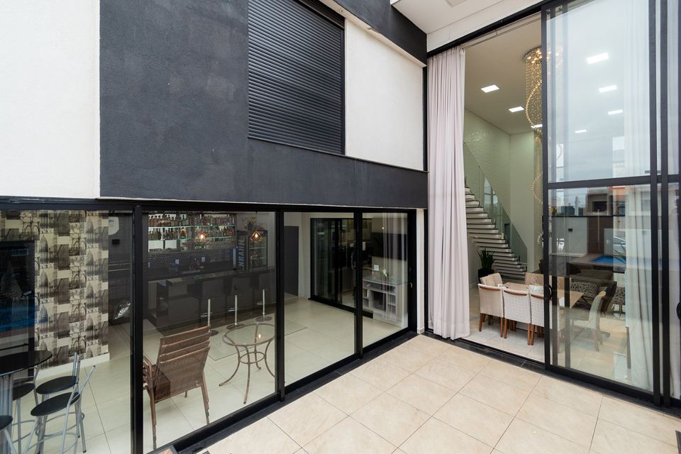 Sobrado localizado em condomínio de Hortolândia/SP! O imóvel oferece porta da entrada principal de modelo pivotante, com 6m² de altura e inteiriça e a sala de estar é integrada com a sala de jantar com pé direito duplo, e tem um lustre de cristal com 4,5m². A cozinha é decorada com pastilhas laminadas, com armários de alta qualidade, uma ilha com o cooktop e armários e uma despensa. As três suítes têm os banheiros com cromoterapia, ar condicionado e janelas automáticas. Área gourmet equipada com chopeira e decorada com luz de Led, dois banheiros e uma hidromassagem com energia solar.