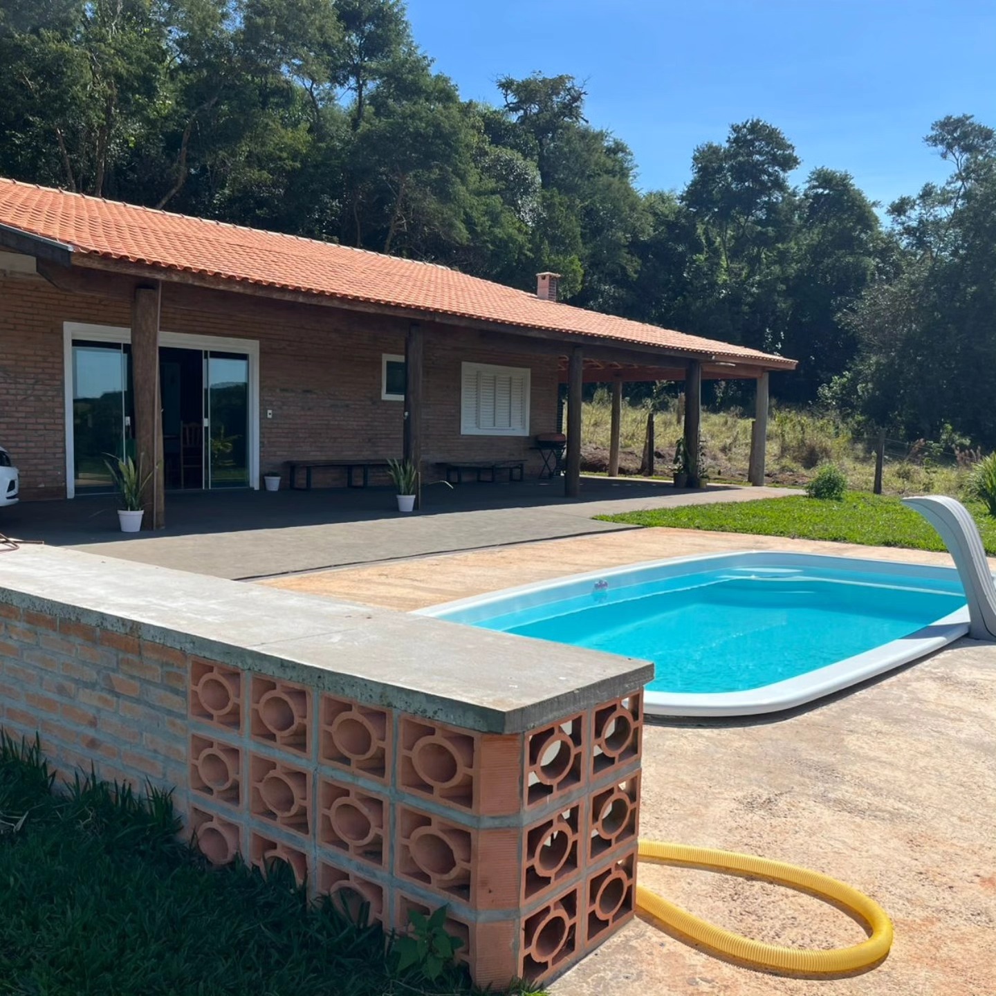 Casa com 2 dormitórios sendo 1 suite, banheiro social, sala de 2 ambientes com cozinha americana e gabinete de laje e piso frio com 110 metros de área construída. Varanda com churrasqueira e piscina. Área total da chácara 20 mil M² com rio no fundo, fechada com cercas e portão eletrônico. Documentos em ordem. Local com vista linda e área de mata, local preservado com muita privacidade!
