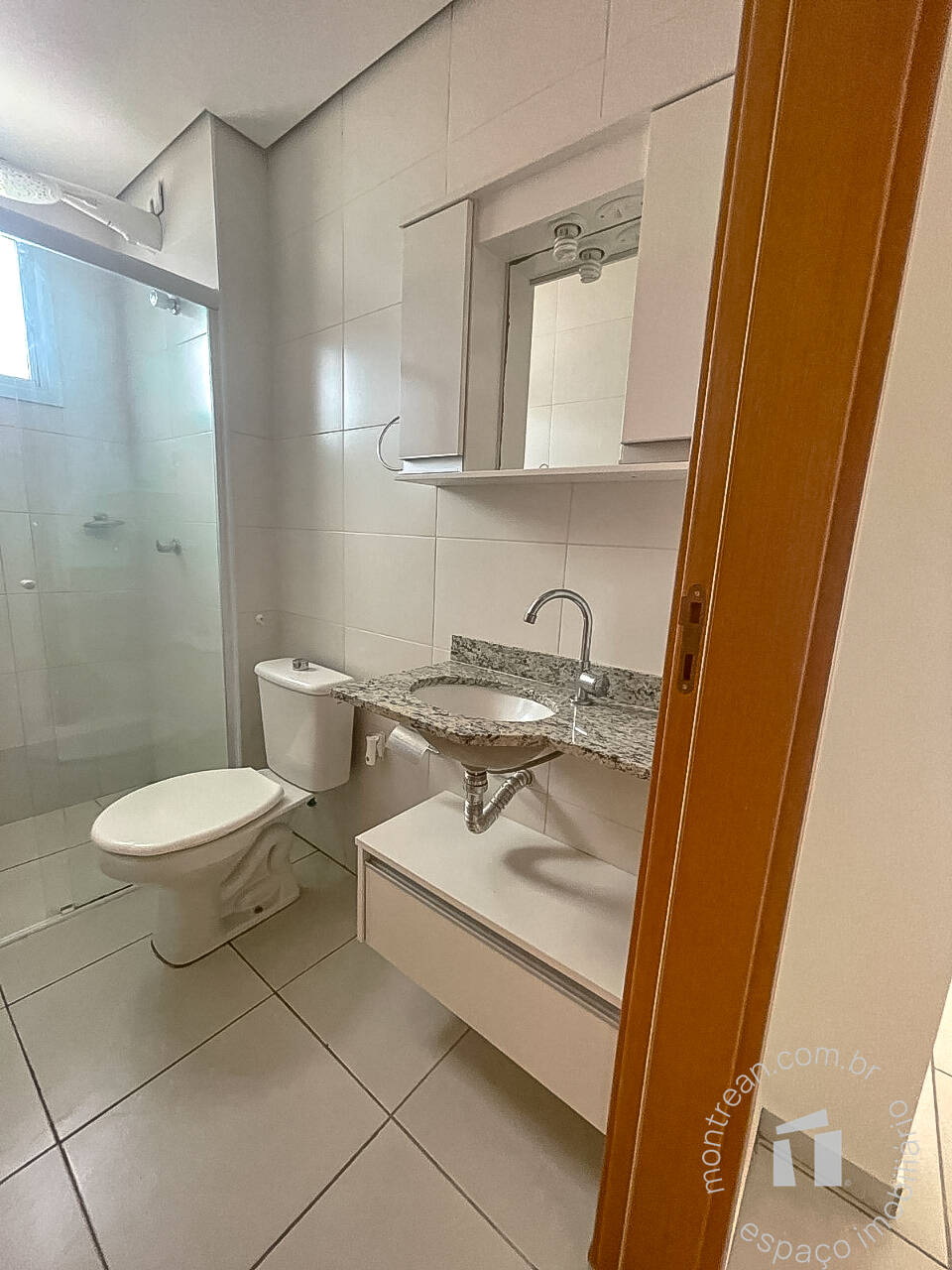 1 banheiro com armário planejado,