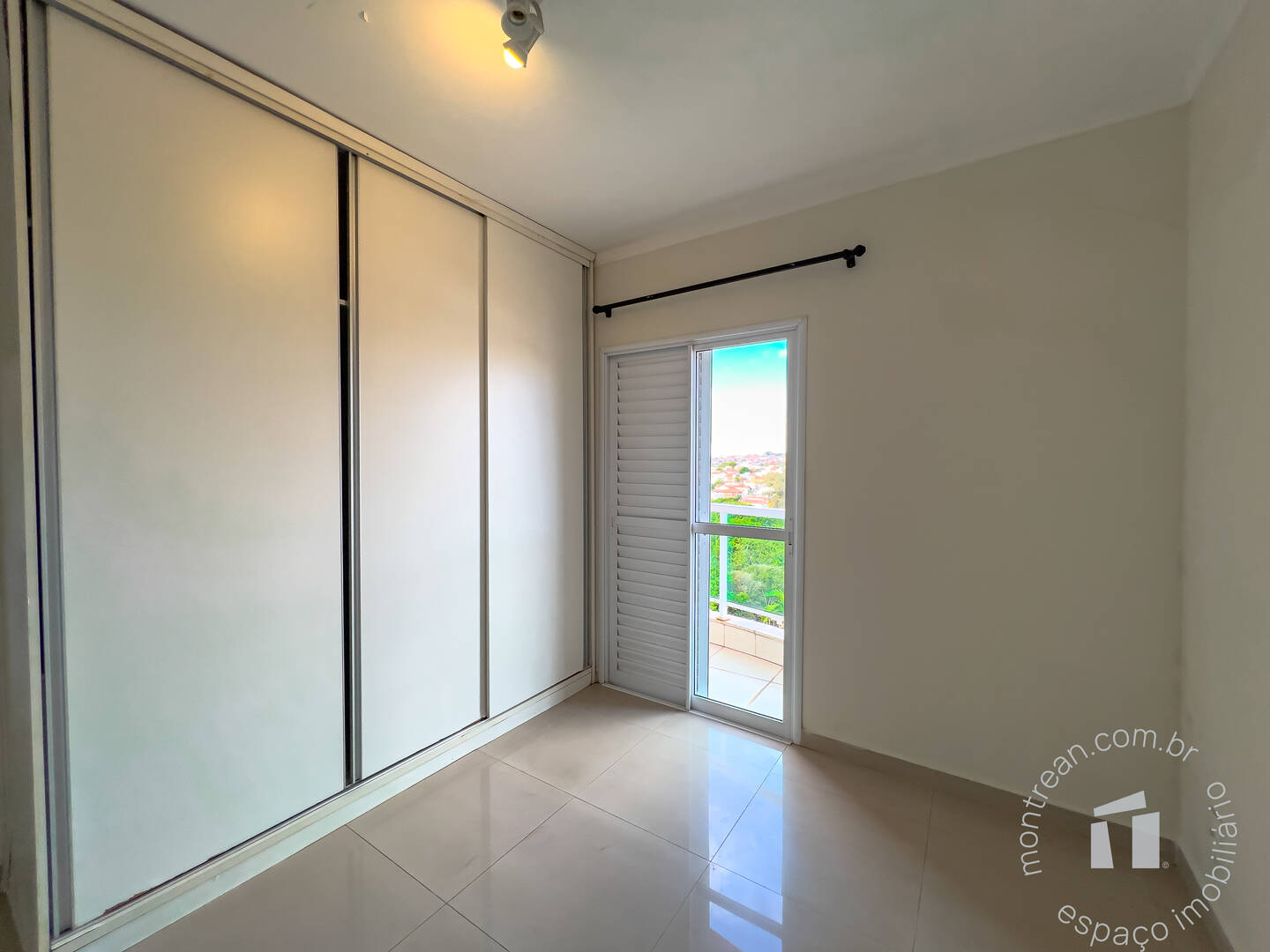 Dormitório com armário planejado e varanda,