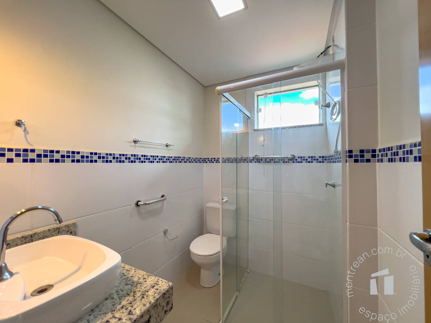 Banheiro social completo, com box e armário planejado,