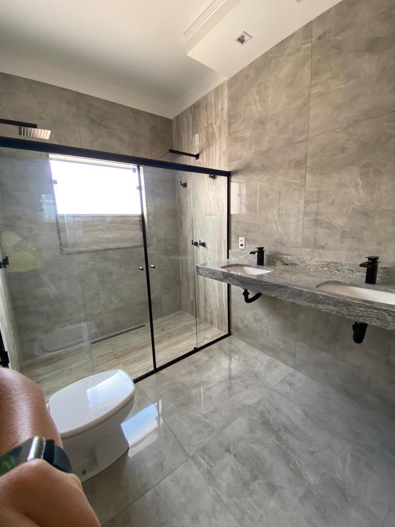 Casa a venda de alto padrão em condomínio fechado com 3 dormitórios sendo 1 suítes, closet, sala de estar, sala de jantar, cozinha com uma bela ilha, lavanderia, banheiro, lavabo, jardim, garagem coberta para dois carros e descoberta para dois carros.